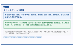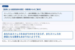 高ストレス者に該当しない場合の案内文例。「心身の健康面において特に問題はみられませんでした」と表示されます。